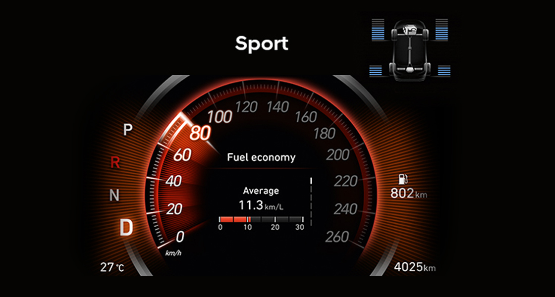 Su motor mejorado, transmisión automática de 8 velocidades y el sistema HTRAC avanzado aseguran el óptimo consumo de combustible y rendimiento de conducción.